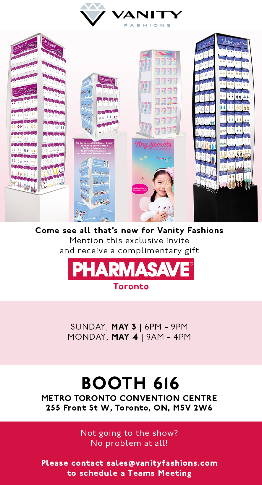 by Admin 24 April 2026 Blog, Gifts, Shows, Trends Vanity Fashions Limited will be exhibiting!Pharmasave Toronto Trade ShowBOOTH 616Metro Toronto Convention CentreSunday, May 3rd 6pm – 9pmMonday, May 4th 9am – 4pmFor more information: sales@vanityfashions.com FashionFor Peace of MindFor Sensitive EarsFor Sensitive SkinHalifax BusinessProud to be CanadianSupport LocalVanity FashionsWe Make Retail Easy Vanity Fashions Will Be At the Neighbourly Pharmacy Trade Show! Post a Comment Cancel replyYour email address will not be published. Required fields are marked * Save my name, email, and website in this browser for the next time I comment. Post Comment